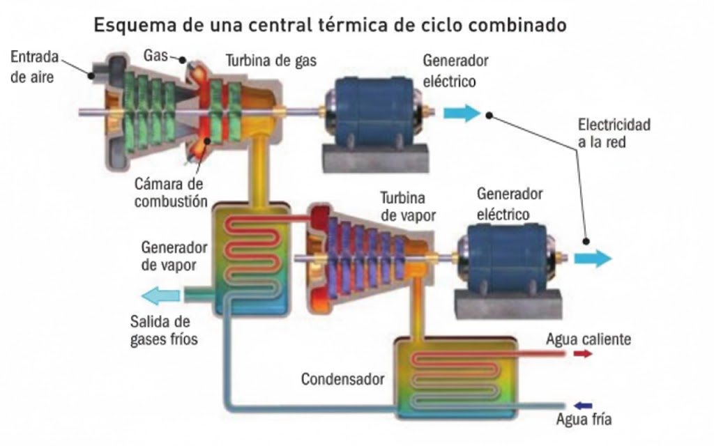 Las Centrales de Ciclo Combinado (CCC) constituyen instalaciones estratégicas para la generación y el suministro continuo de energía eléctrica, debido a su alta eficiencia operativa y confiabilidad. Su principio de funcionamiento se basa en la integración secuencial de dos ciclos termodinámicos: un ciclo de turbina de gas y un ciclo de vapor. En el primero, el gas natural es utilizado como combustible para accionar una turbina de gas acoplada a un generador eléctrico. Los gases de combustión resultantes, que se descargan a elevadas temperaturas, son aprovechados en una caldera de recuperación de calor (HRSG, por sus siglas en inglés) para la producción de vapor sobrecalentado de alta energía, el cual impulsa una turbina de vapor conectada a un segundo generador eléctrico, optimizando así el rendimiento global del proceso de generación.